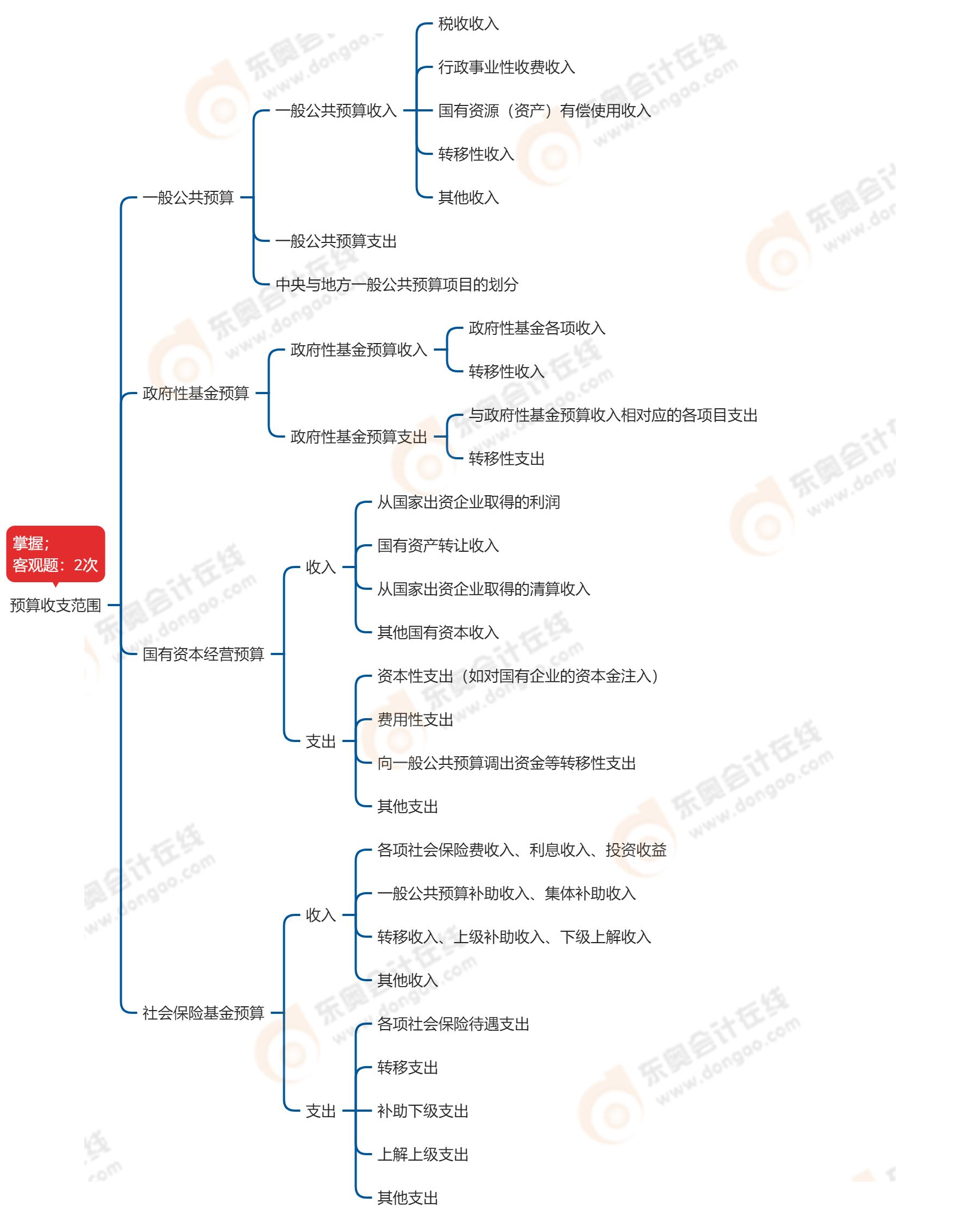2023年中級會計經濟法第七章思維導圖:預算收支范圍