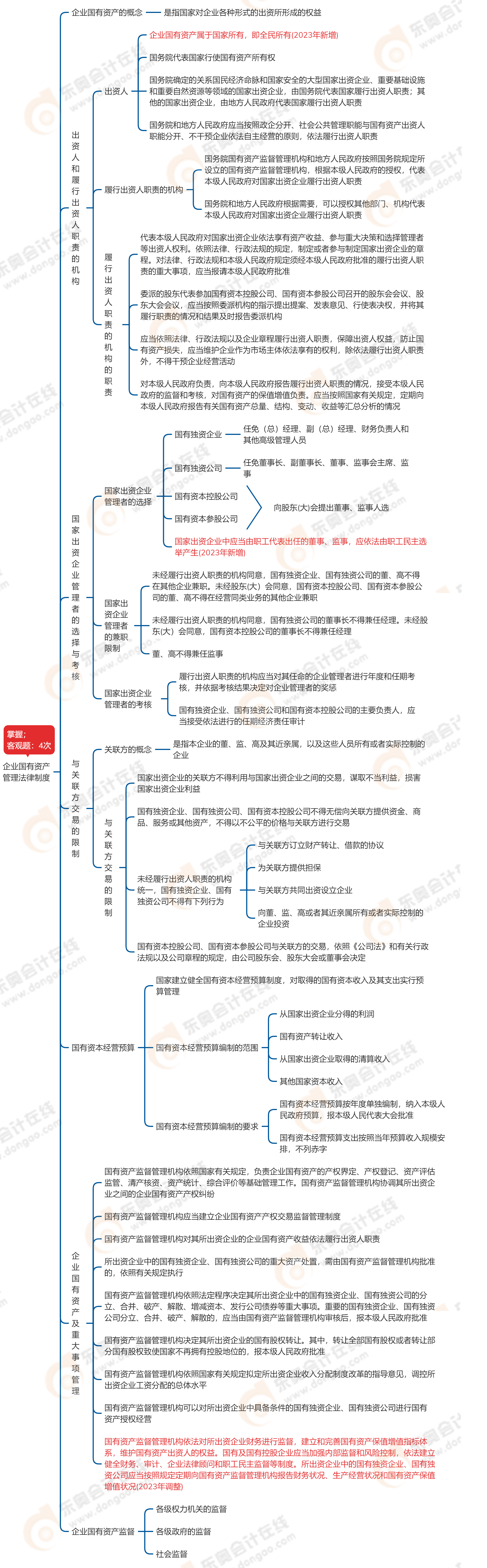 要想順利通過2023年中級會計(jì)師考試,就要勤奮學(xué)習(xí),堅(jiān)持到最后!為了幫助大家更好的備考,東奧整理了《經(jīng)濟(jì)法》第七章財(cái)政法律制度的【企業(yè)國有資產(chǎn)法律制度】思維導(dǎo)圖如下: