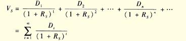 從理論上說,如果股東不中途轉(zhuǎn)讓股票,投資于股票所得到的未來現(xiàn)金流量是各期的股利。假定某股票未來各期股利為Dt(t為期數(shù)),Rs為估價所采用的貼現(xiàn)率即所期望的最低收益率,股票價值的估價模型為: