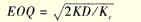 式中,D為存貨年需用量,K為每次訂貨費(fèi)用,KC為單位存貨儲存費(fèi)。