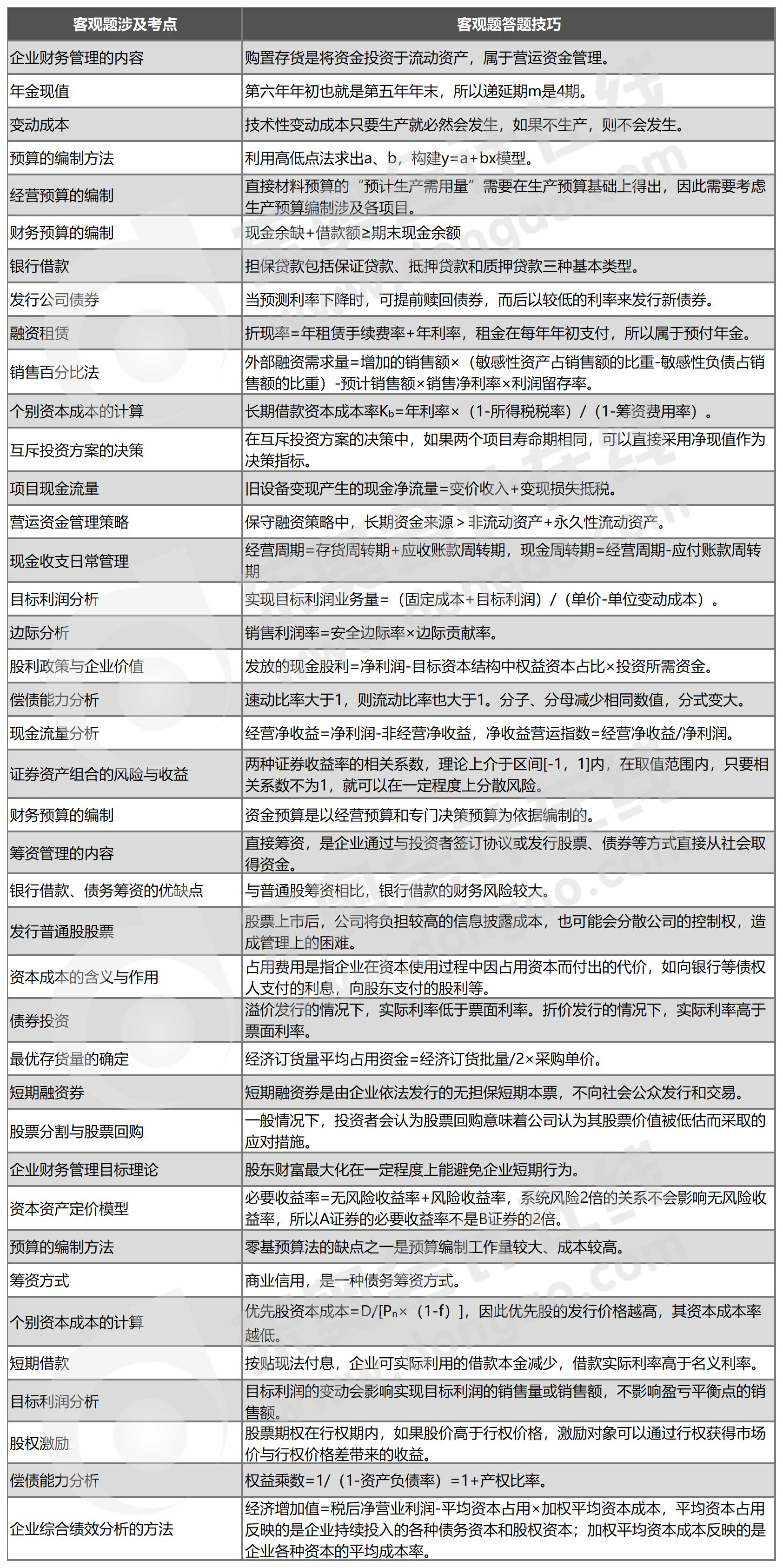 《財務管理》客觀題知識點的覆蓋面較廣,每一章都有一定的涉及,但是重點仍舊比較突出。