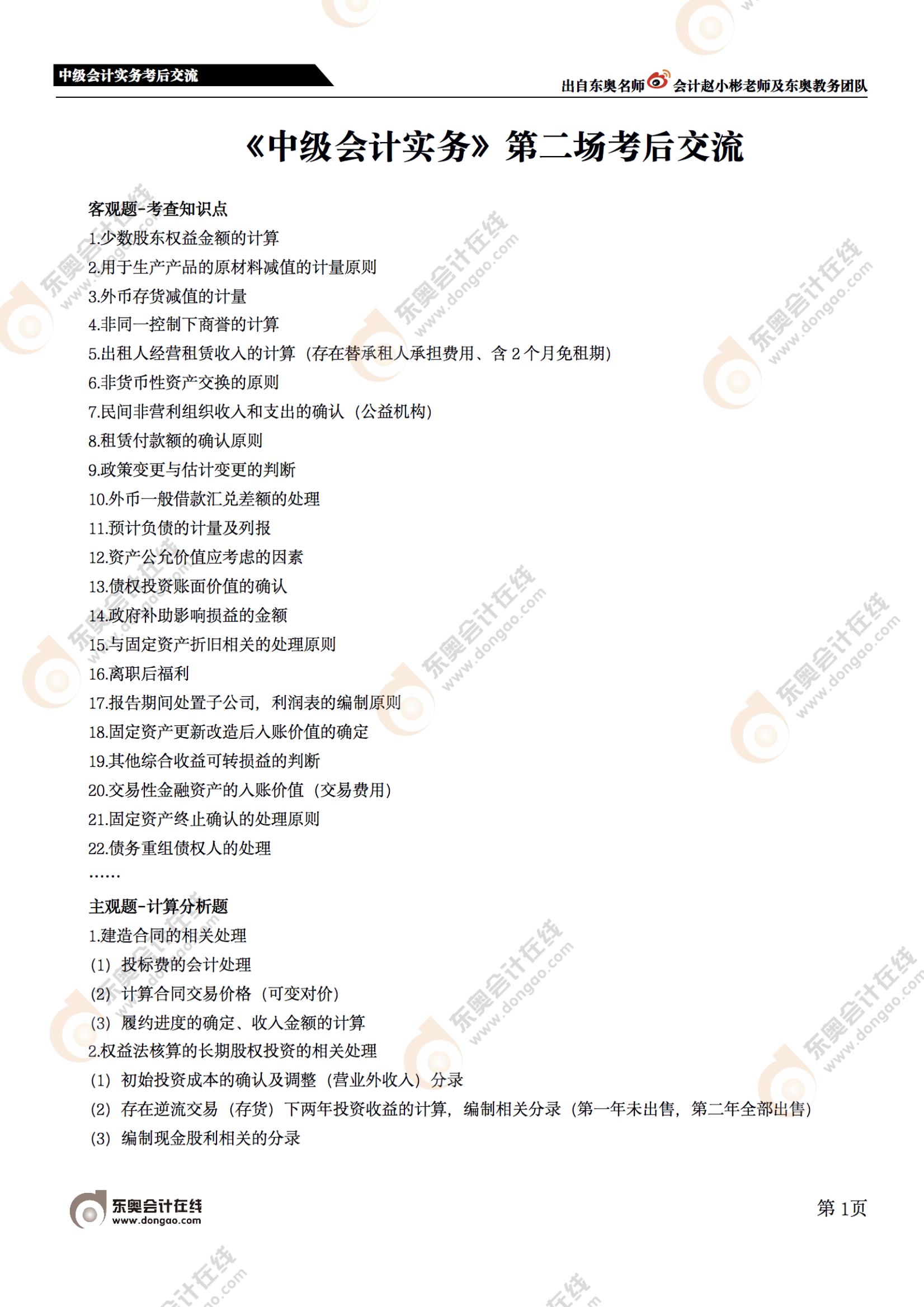 2022年中級會計實務(wù)第二批次的考試已經(jīng)結(jié)束,為了方便考生了解考試涉及到的知識點,東奧會計在線推出了“2022年中級會計考試及時交流”互動直播!文字版本的內(nèi)容已經(jīng)整理完畢,請各位考生注意查收!點擊觀看完整直播>>>