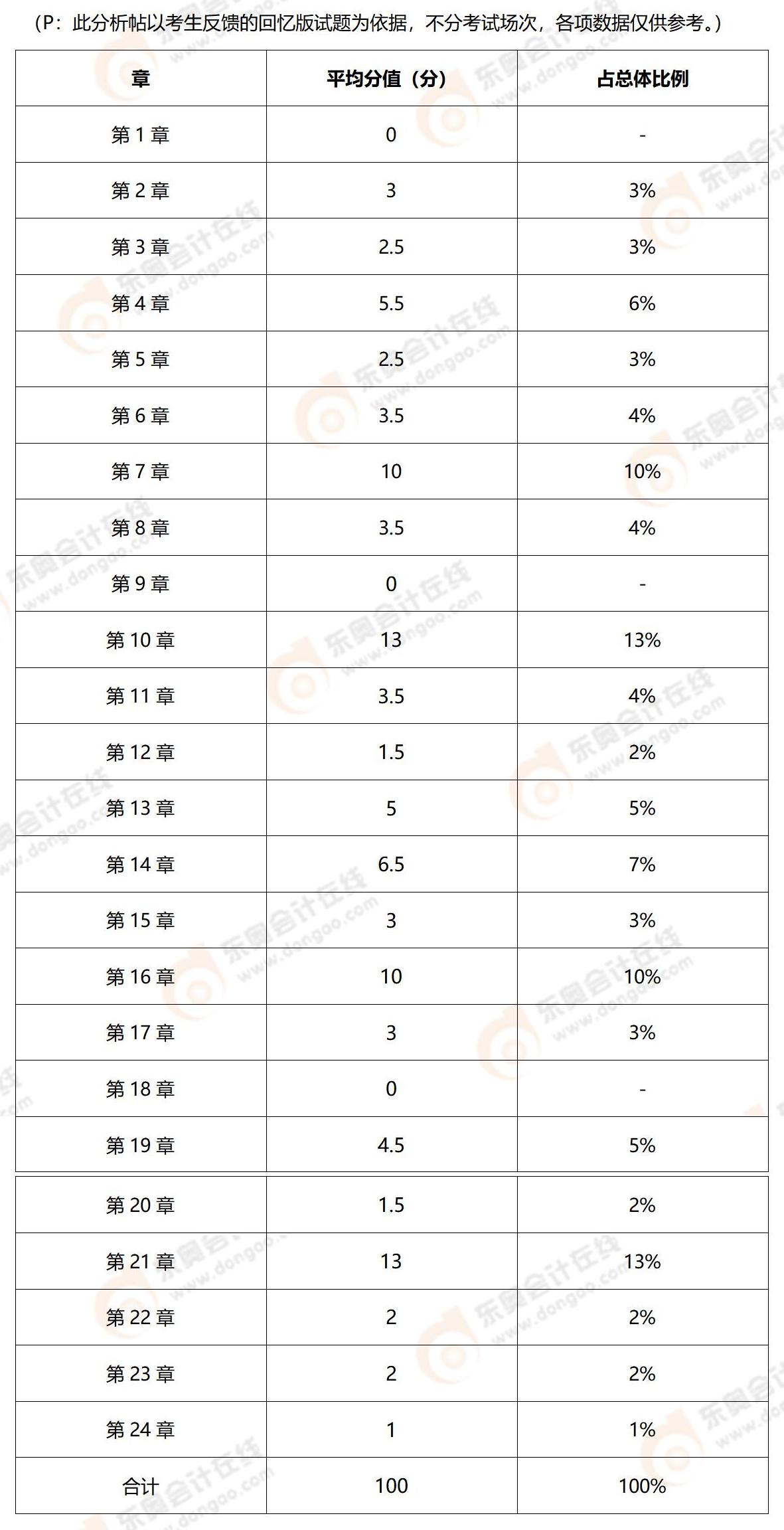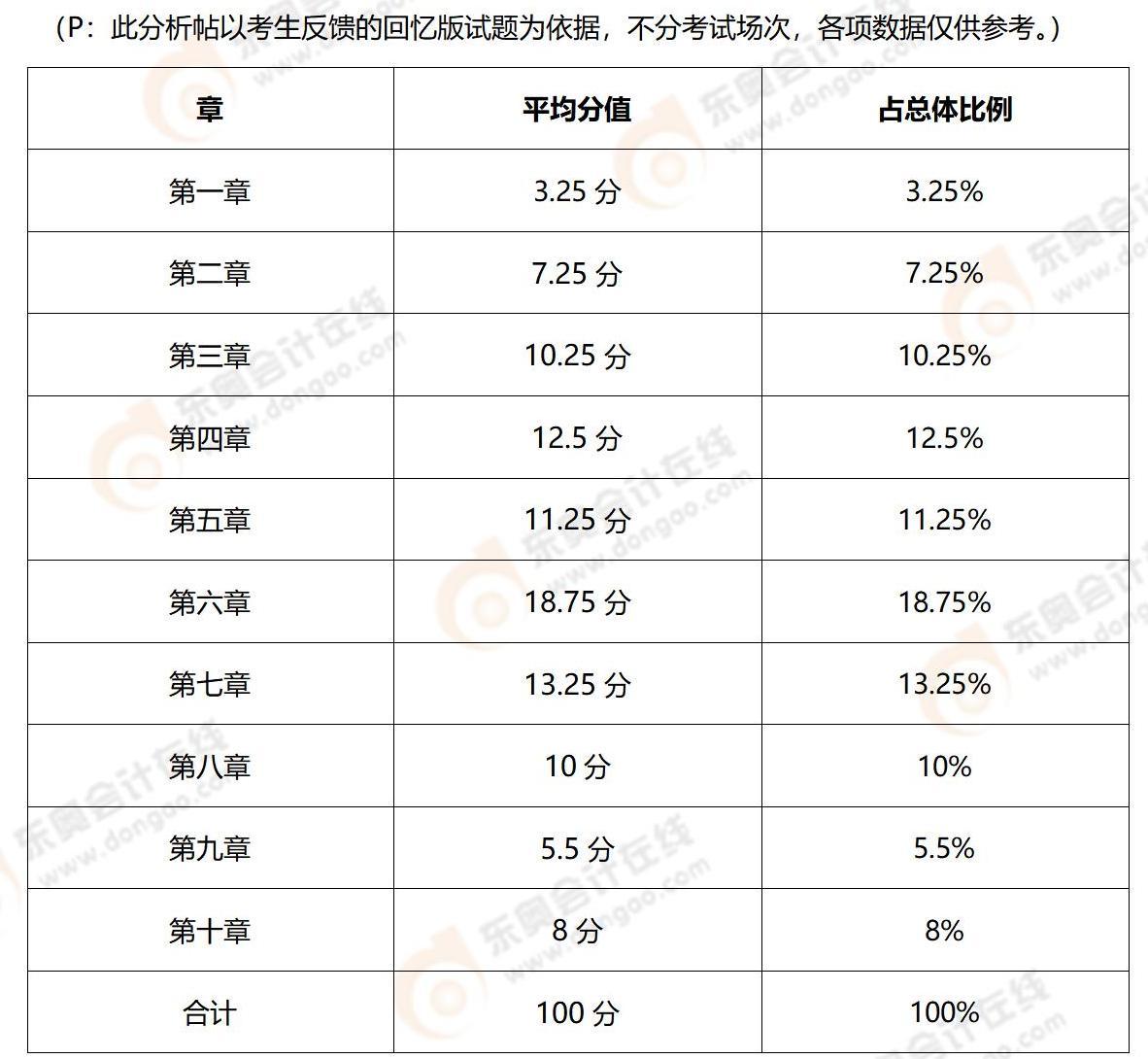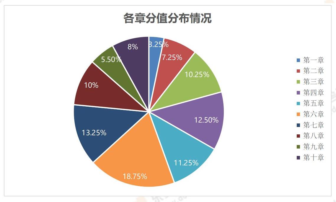 從以上數(shù)據(jù)可知,各章分值占比相對比較平均,除第1章、第9章考查較少外,其他章節(jié)占比均較高。