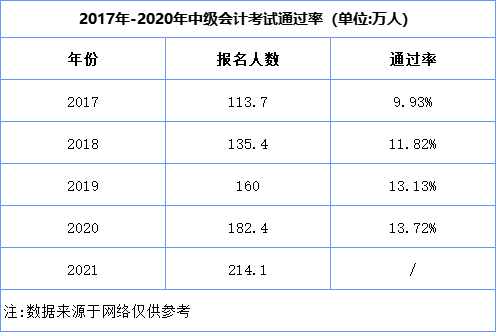 以下為近幾年中級(jí)會(huì)計(jì)考試的通過率,由下圖可知中級(jí)會(huì)計(jì)考試的通過率并不高。