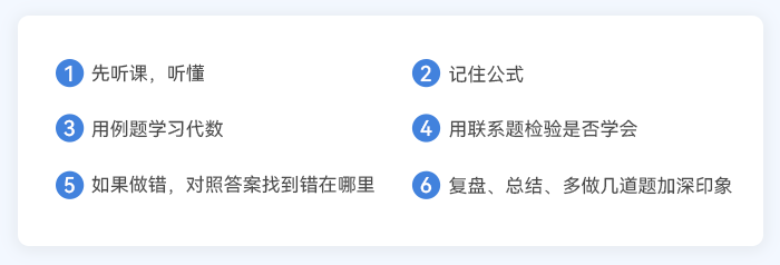 第一步就是聽課,聽懂理解是一切學(xué)習的前提,《財管》涉及的會計邏輯較難理解,那么考生就重復(fù)多聽幾遍,書讀百遍其義自現(xiàn)。第二步,就是根據(jù)理論知識明確公式推導(dǎo)的原理。前兩步要求對該知識有了理論層面的理解。第三步就要用例題代數(shù)進行計算;第四步-第六步則通過做練習題,發(fā)現(xiàn)問題,這種問題通常是某一點出現(xiàn)錯誤,這是我們對理論知識的部分層面理解的錯位,那么針對錯處集中復(fù)盤,然后重復(fù)做題——復(fù)盤的步驟。按照這樣的流程學(xué)習知識點,基本上如果題做的對,那么公式的原理也就厘清了,剩下的就是在后續(xù)的學(xué)習中不斷鞏固和強化記憶。