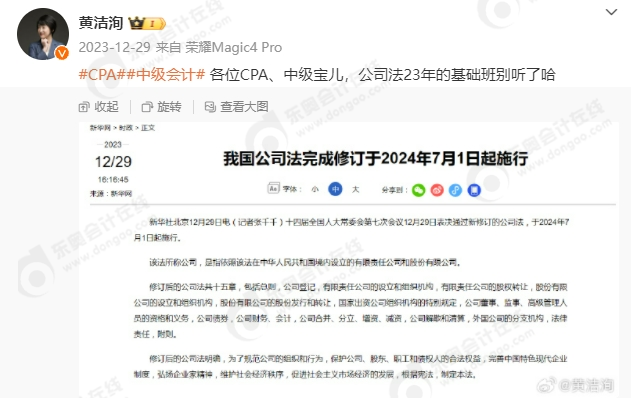 中級會計經(jīng)濟法科目考試大綱受法律法規(guī)調(diào)整的影響非常大,因為在本科目的學(xué)習(xí)中涉及很多法律法規(guī)《公司法》、《合同法》、《保險法》、《票據(jù)法》、《物權(quán)法》等多項法律法規(guī),任何一個做出調(diào)整都會引起考試大綱的相應(yīng)變化。黃潔洵老師年前在微博中就曾提醒大家:公司法23年的基礎(chǔ)班別聽了,需要預(yù)習(xí)的章節(jié)也為大家做了強調(diào)。
