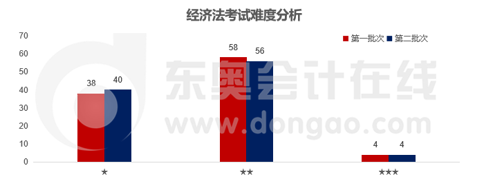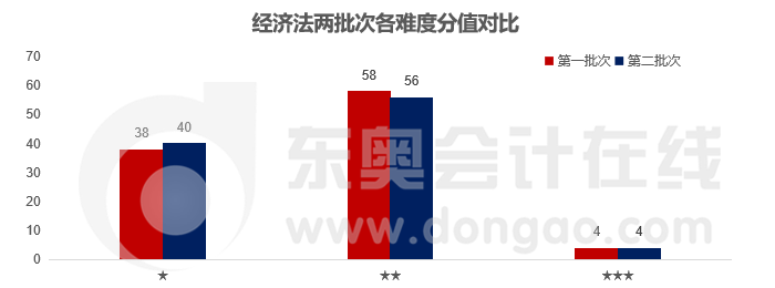 本次中級(jí)經(jīng)濟(jì)法考查的重點(diǎn)是★難度和★★難度的題目,從考查分值上來看,★難度的題目所占的比例更大一些,達(dá)到了54%,但是★難度題目的分值占比也到了46%。建議大家在備考的過程中不要針對(duì)難題進(jìn)行訓(xùn)練,把老師重點(diǎn)講授的內(nèi)容掌握好,取得高分還是不難的!