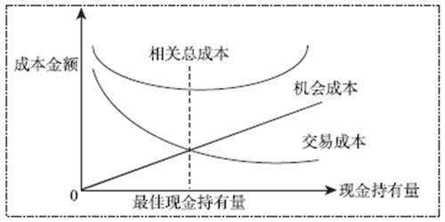 交易成本與機(jī)會(huì)成本相等,相關(guān)總成本最低,那么此時(shí)的現(xiàn)金持有量也就是最佳現(xiàn)金持有量