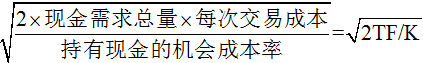 現(xiàn)金需求總量/現(xiàn)金持有量×每次交易成本=現(xiàn)金持有量/2×持有現(xiàn)金的機(jī)會(huì)成本率