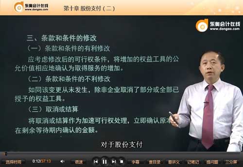以下是東奧名師張志鳳2014年中級會計職稱《中級會計實務》基礎班免費視頻:股份支付的確認和計量的精講: