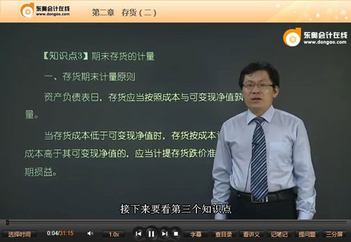 以下是東奧名師趙耀2014年中級(jí)會(huì)計(jì)職稱《中級(jí)會(huì)計(jì)實(shí)務(wù)》基礎(chǔ)班免費(fèi)視頻:期末存貨的計(jì)量的精講: