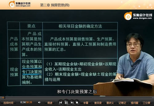 以下是東奧名師田明2014年中級會計職稱《中級財務(wù)管理》基礎(chǔ)班免費視頻:產(chǎn)品成本預算和現(xiàn)金預算的精講: