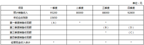 資料二:預(yù)計每個季度所需要的直接材料均以賒購方式采購,其中60%于本季度內(nèi)支付現(xiàn)金,其余40%需要到下個季度付訖,假定不存在應(yīng)付賬款到期現(xiàn)金支付能力不足的問題。假設(shè)不考慮相關(guān)稅費影響。