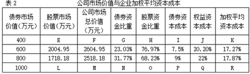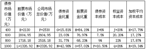 (3)根據(jù)表2的計算結(jié)果,確定該公司最優(yōu)資本結(jié)構(gòu)。