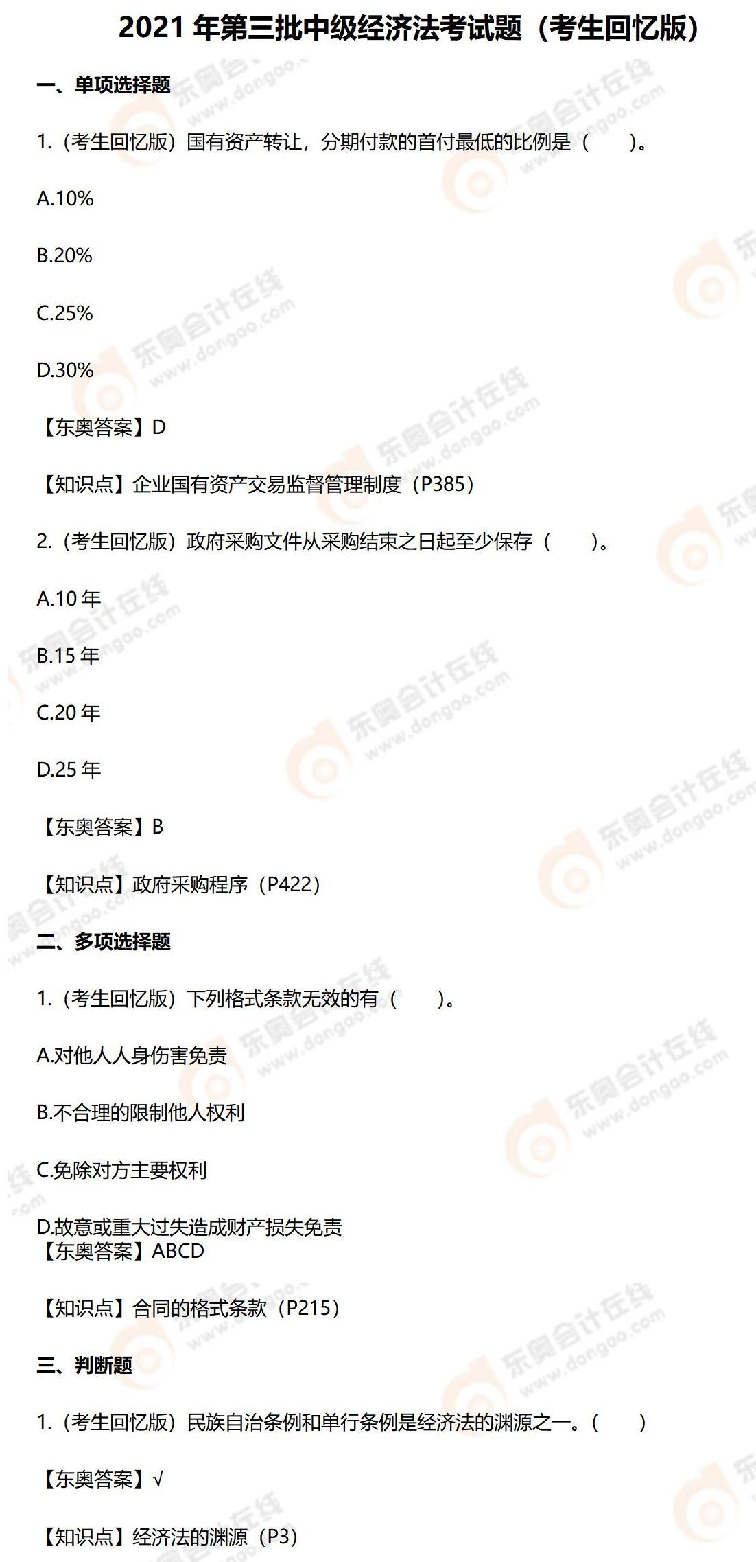 中級(jí)會(huì)計(jì)職稱(chēng)考試已全面結(jié)束,根據(jù)考生們?cè)跂|奧論壇以及社區(qū)反饋的考題,東奧會(huì)計(jì)在線為大家整理了第三批次考試《經(jīng)濟(jì)法》科目的考題及參考答案,考生們一起看看吧!