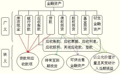 、苌蠄D所示的金融資產(chǎn)“廣義”與“狹義”的映射關(guān)系,是為形象說明,是一般情況下的映射關(guān)系,企業(yè)應(yīng)當(dāng)結(jié)合自身業(yè)務(wù)特點(diǎn)和風(fēng)險(xiǎn)管理要求,特別是管理者的持有意圖,對(duì)金融資產(chǎn)進(jìn)行核算分類。