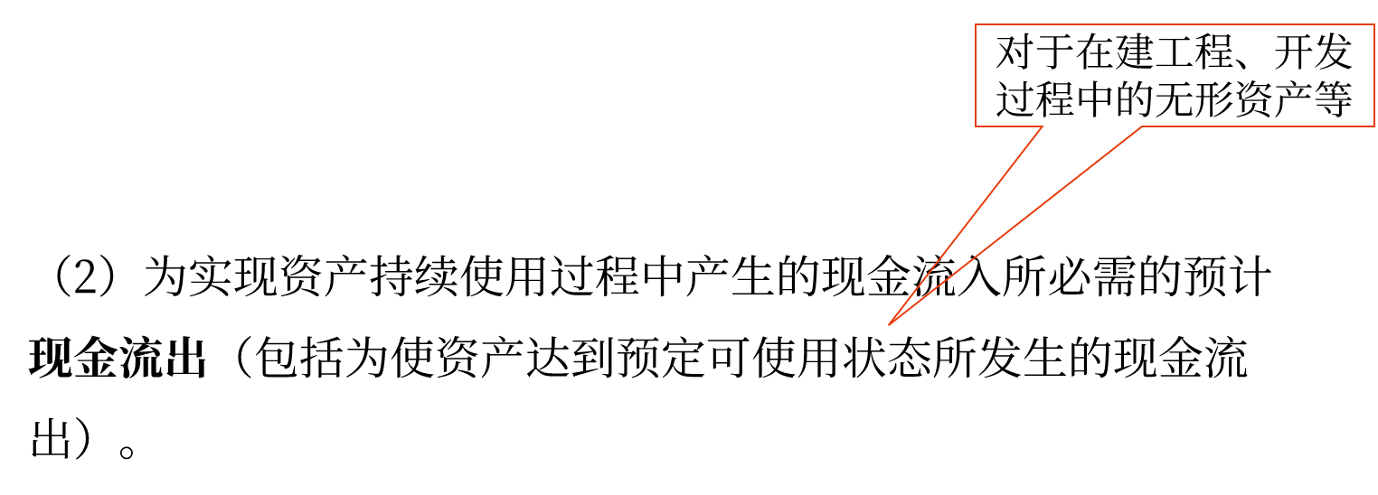 不包括與將來(lái)可能會(huì)發(fā)生的、尚未作出承諾的重組事項(xiàng)或者與資產(chǎn)改良有關(guān)的預(yù)計(jì)未來(lái)現(xiàn)金流量。但包括為了維持資產(chǎn)正常運(yùn)轉(zhuǎn)或者資產(chǎn)正常產(chǎn)出水平而必要的支出或者屬于資產(chǎn)維護(hù)支出所對(duì)應(yīng)的現(xiàn)金流量。