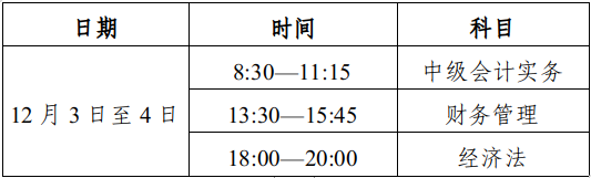中級資格延期考試于2022年12月3日至4日舉行,共2個批次,具體安排如下: